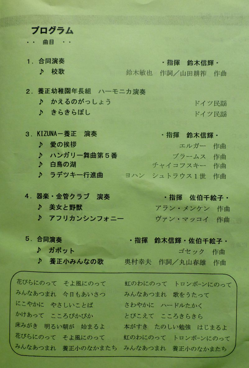 曲目は養正小学校校歌、上記四季のハ−モニ−(春・夏)、アンダンテ、ハンガリア舞曲第5番、トルコマ−チ、みんなの歌