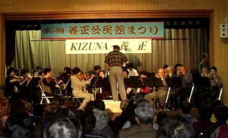 2004年11月14日(日) 第15回 養正公民館まつりでの演奏風景 曲目 参加者 35名 番組の中で音楽に合わせて「村祭り」を会場の全員で歌ったりもした、 |